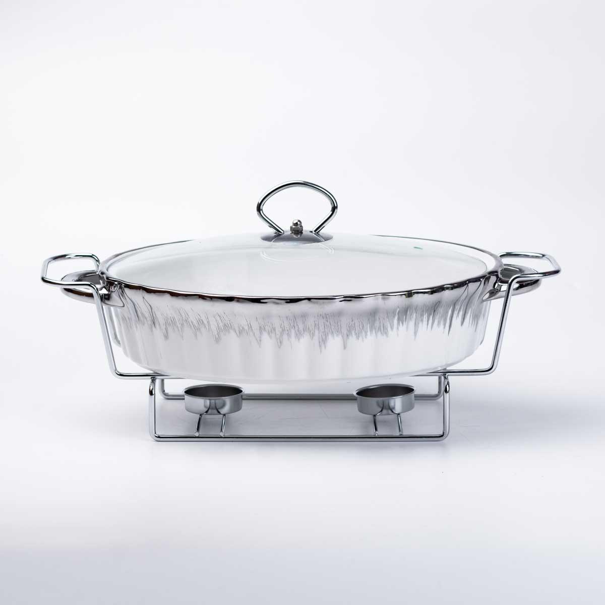Марміт овальний керамічний 1,5 літра на металевій підставці з підігрівом
